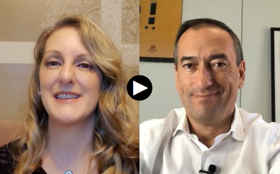 La vicepresidenta mundial de Seguridad y Salud, Janaina Gameiro, habla con nuestro Director General, Javier Barquín
