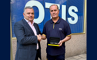 En la imagen, Manuel Suárez, director de zona de Canarias, le hace entrega del obsequio conmemorativo por su 35 aniversario.