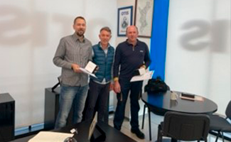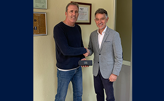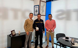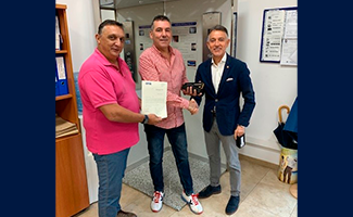En la foto, el delegado comercial Óscar Cabrera y el delegado de zona Francisco Gil, le hacen entrega la entrega del obsequio.