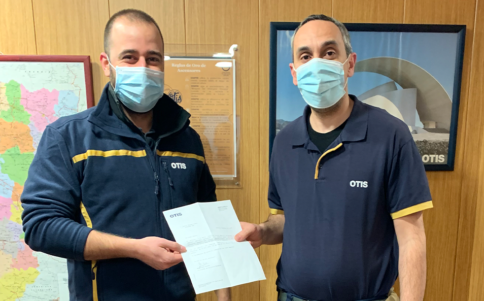 Daniel Valero, operario de la Oficina de Servicio de Zaragoza Sur, ha cumplido 20 años de antigüedad en la compañía. ¡Enhorabuena, Dani!En la foto recibiendo el comunicado de su nuevo quinquenio de la mano del supervisor Rubén López.