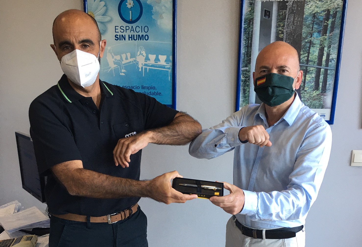 30 años en los que siempre ha demostrado una vehemencia casi desbordante, haciendo ver que para él, el mundo Otis, y la electrónica en general, no es solo un trabajo, sino una gran pasión.En nombre de la compañía queremos dar la enhorabuena a Paco por todos estos años y deseamos que sigas contagiando con tu ilusión por este trabajo día tras día.En la foto, Juan Manuel García Baena, delegado de Córdoba, hace entrega del obsequio de 30 años al homenajeado, respetando las medidas de distanciamiento social.