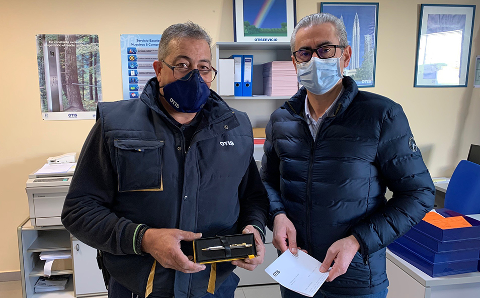 El pasado mes de enero, Francisco Ruiz Alhaja cumplió 30 años al servicio de Otis desempeñando sus funciones en la delegación de Mérida como técnico de mantenimiento. Este día se hizo entrega del regalo conmemorativo junto a la carta de agradecimiento del director de Zona. En la foto podemos ver a Francisco junto al delegado de Mérida.