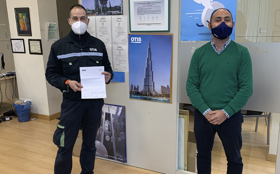 Este mes de febrero, Raúl Valdivieso Rincón, técnico de la delegación de Burgos, ha cumplido 20 años en Otis y por ello, ha recibido su merecido reconocimiento. En la foto, de izquierda a derecha, aparece Raúl junto a Roberto Grande, delegado de Burgos. ¡Muchas felicidades, Raúl!