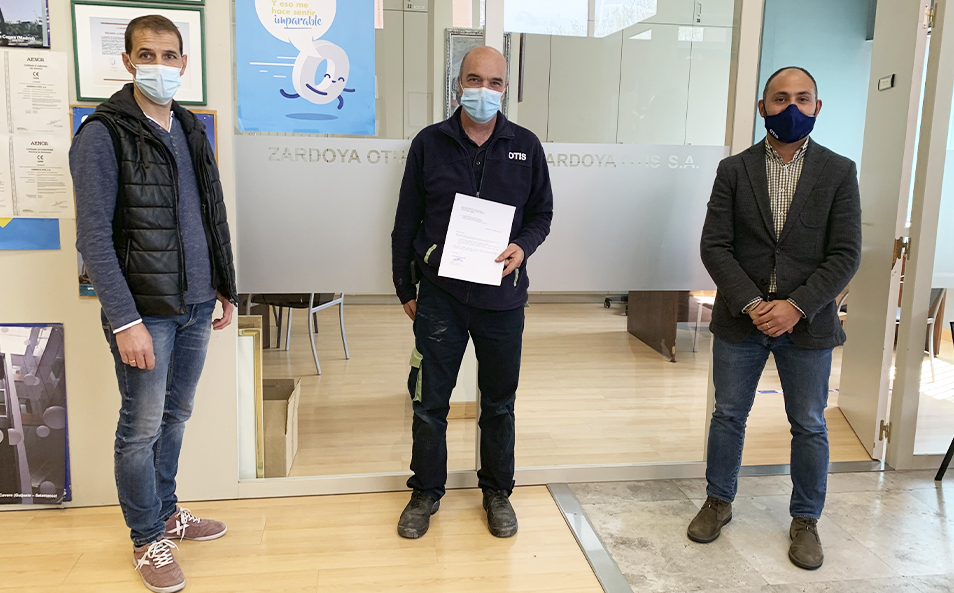 Nuestro compañero Miguel Ángel López Arranz recibió el pasado 24 de mayo un reconocimiento en materia de seguridad por parte del delegado de Zardoya Otis en Burgos, Roberto Grande.Los motivos que le han llevado a lograr esto han sido: