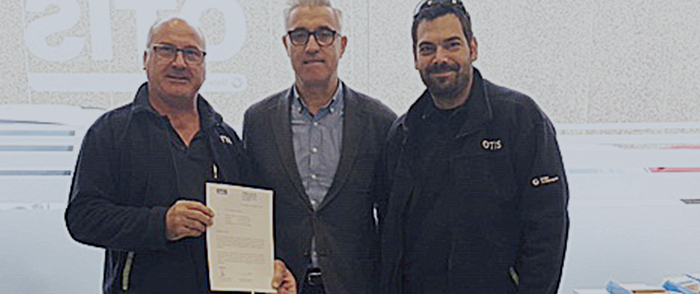 Francisco Valeros, jefe de la oficina de Lloret de Mar, en presencia del delegado de prevención Iván Ballesteros, hizo entrega al técnico Francisco Durán, de la carta de reconocimiento y compromiso con la Seguridad tras los resultados de la última auditoria FPA. En esta materia, Francisco Durán es un referente para sus compañeros.