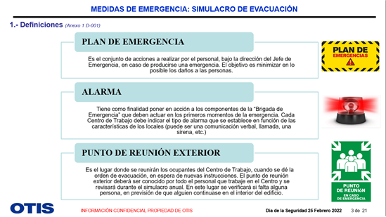 1. Revisión de Medidas del Plan de Emergencia del centro de trabajo correspondiente, simulacro de evacuación (con informe del mismo)
