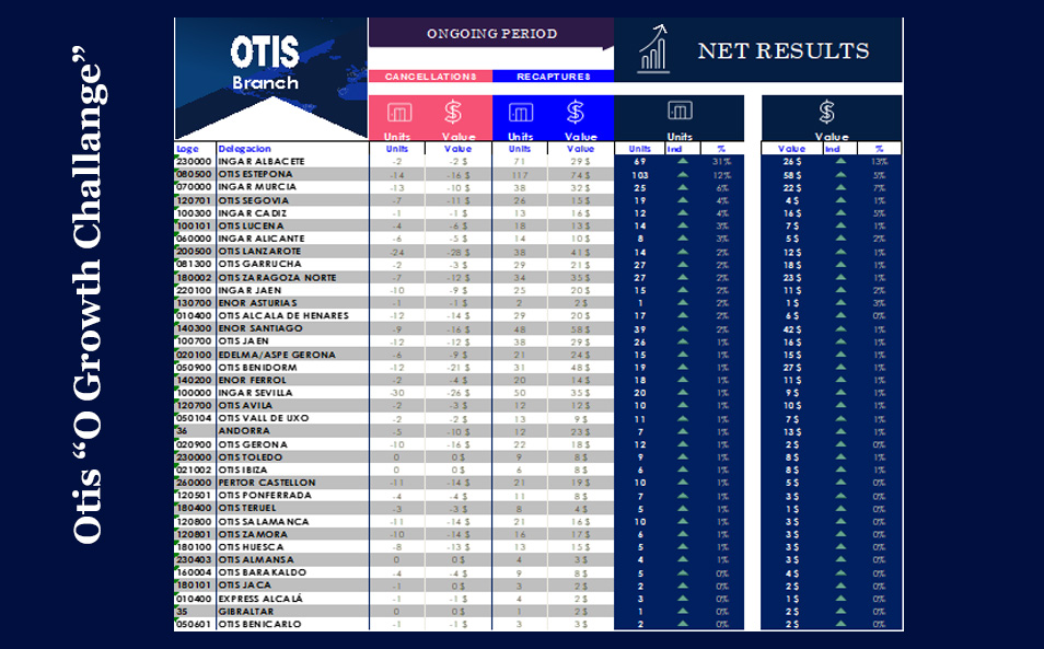 En julio del año pasado Otis lanzó a nivel internacional el programa de reconocimiento “O Growth Challenge”, para animar el crecimiento de nuestra cartera de mantenimiento.