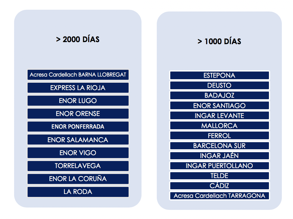 También queremos felicitar a aquellos centros que, día a día, apuestan por la seguridad y, año tras año, van superándose en esta materia, habiendo alcanzado durante 2019 los más de 1.000, 2.000, 3.000 días o incluso más de 10 años sin accidentes. Estos centros son: