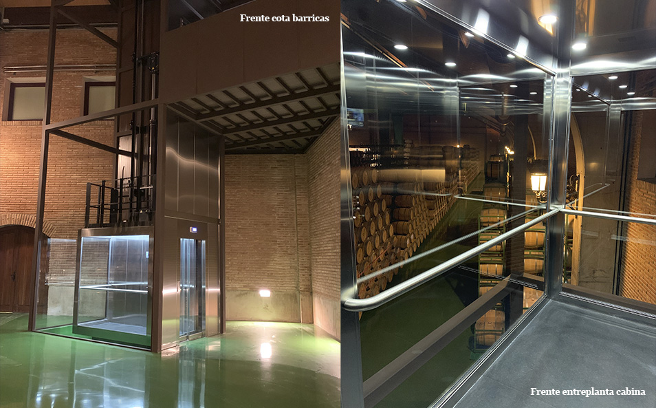 Se ha instalado un equipo de la fábrica de Vigo muy especial con matices y detalles como ventilador en techo para percibir las sensaciones y poder experimentar y oler el ambiente a barrica dentro de la propia cabina. Además, cuenta con paño panorámico lateral de una sola pieza con un mínimo marco, así como puertas Full Glass y diseño hueco abierto para incidir lo mínimo posible en el ecosistema estético y funcional de la nave con unas condiciones muy especiales de climatización (+/- 11,5 ºC para mantener las barricas de roble francés y el vino en óptimas condiciones).