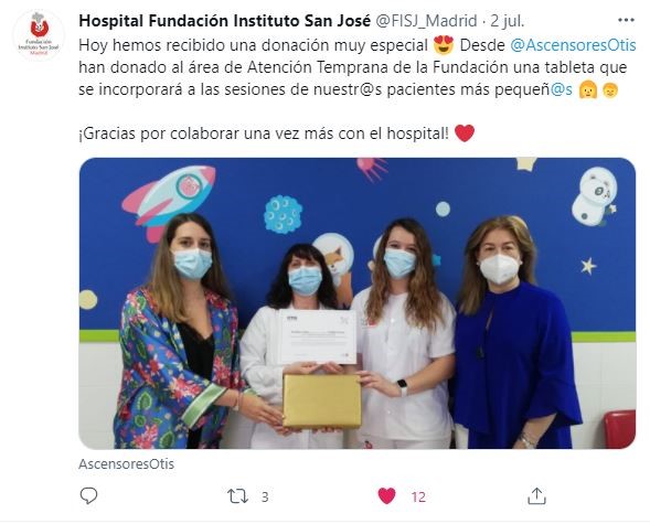 Desde el equipo de Atención Temprana de la Fundación Instituto San José han querido agradecer esta donación y señalan que “gracias a esta herramienta, los diferentes profesionales que conformamos el equipo podremos llevar a cabo labores de evaluación e intervención con los pacientes más jóvenes y medir su evolución, desde que inician las terapias hasta el día que reciben el alta”.